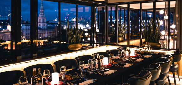 Book your festive private dining room for December and enjoy a complimentary round of bubbles for your Guests, OR treat yourself with a £100 gift voucher as a thank you. (To redeem, please mention the offer at the time of booking by quoting ‘December PDR offer’. This offer is valid for private dining rooms booked between 25 June – 14 September, for Private Dining Room bookings taking place in December only. The offer cannot be combined with any other promotion. It applies only to new bookings for private dining rooms with a minimum of 12 guests and a maximum of 50 guests.)