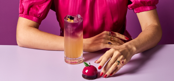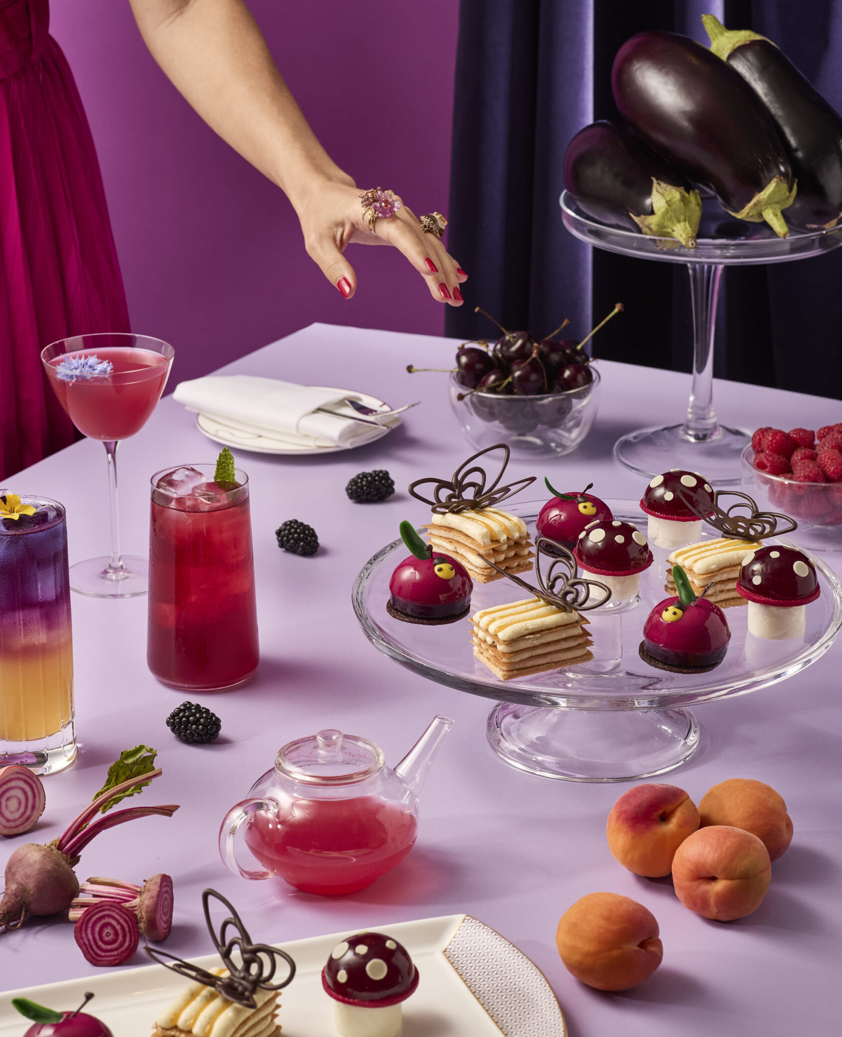 The Summer Tea Salon is a collaboration between the London-based jewellery designer and Executive Chef Dominic Teague of One Aldwych, who has created a trio of sweet treats, with accompanying iced teas, inspired by the launch of Anabela Chan’s latest collection, Fruit Gems™. This innovative new collection turns waste to wonder by taking over ripened fruits and vegetables, including beetroot, tomatoes, blueberries, dragon fruit and spinach, and extracting their natural pigment to create vibrant gemstones that are then transformed into beautiful pieces of jewellery that minimise food waste in the process.