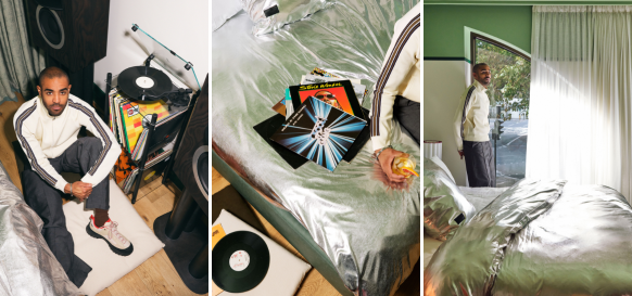 Shivas Howard-Brown’s audio sanctuary: The founder of London-based loudspeaker design studio Friendly Pressure transforms the living space into a complete sonic experience. A set of custom Friendly Pressure speakers provides immersive audio, with a record player and vinyl selection at the guest’s disposal, all rounded off with a playlist personally curated by Shivas. Soft seat cushions allow guests to sit on the floor and feel the vibrations, while olives and cocktail mixers encourage after-hours unwinding.
